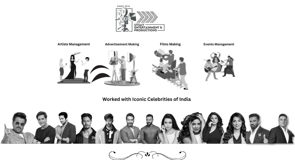 Renowned as India’s Best Talent Management Agency, Utsav Entertainment specializes in creating spectacular corporate events, weddings, and endorsements. With meticulous planning and an extensive industry network, we ensure flawless execution that elevates your brand and events to new heights.